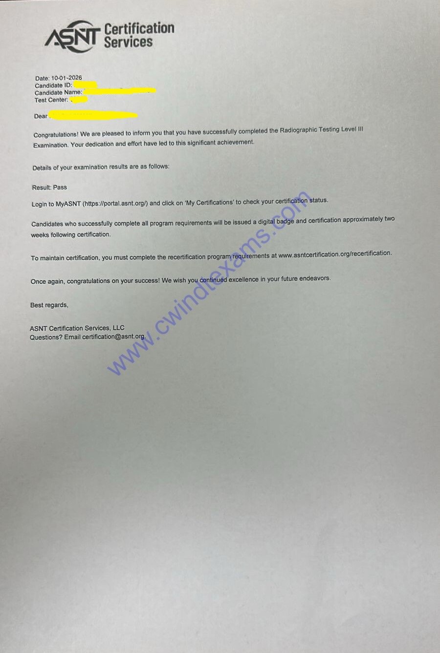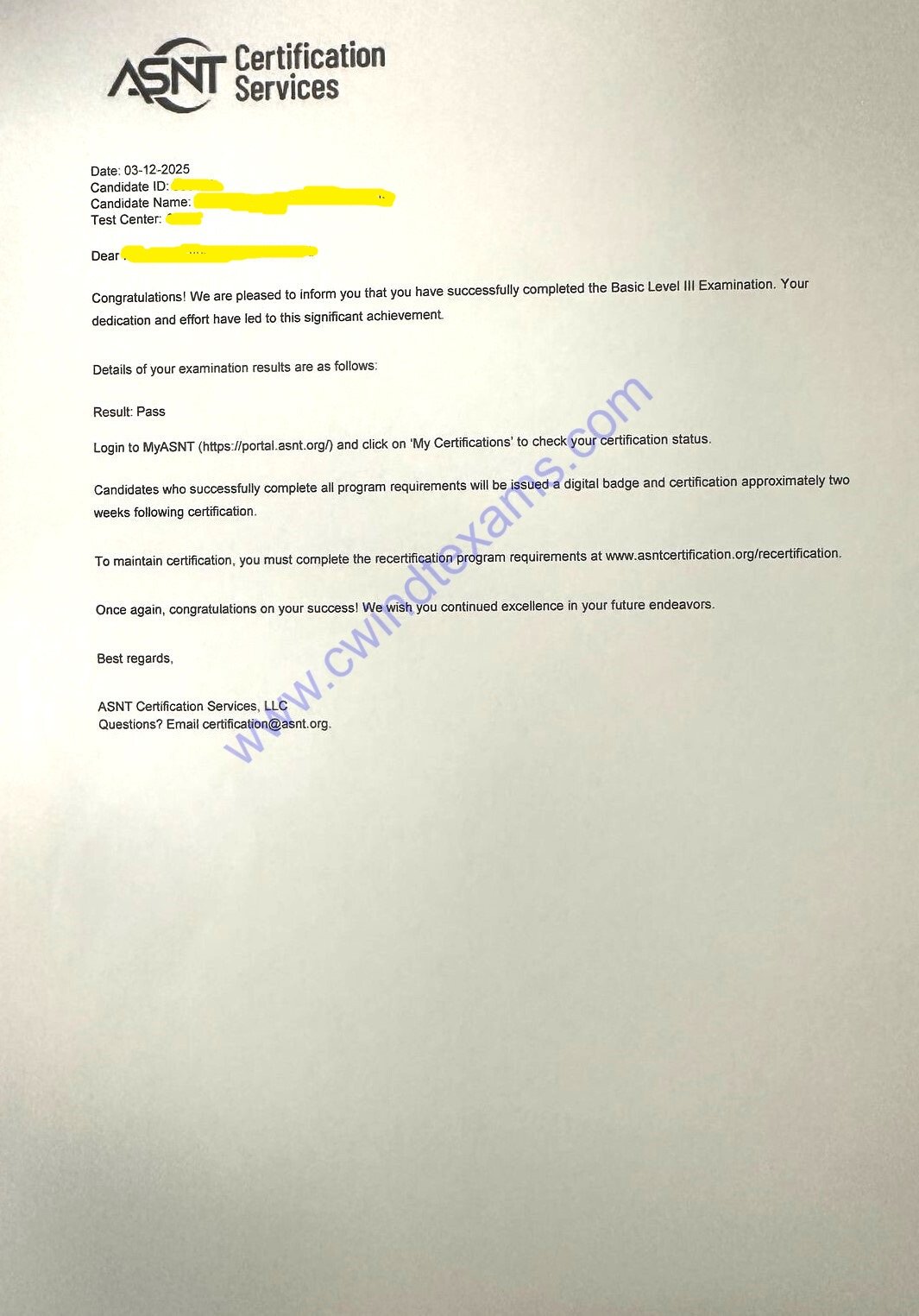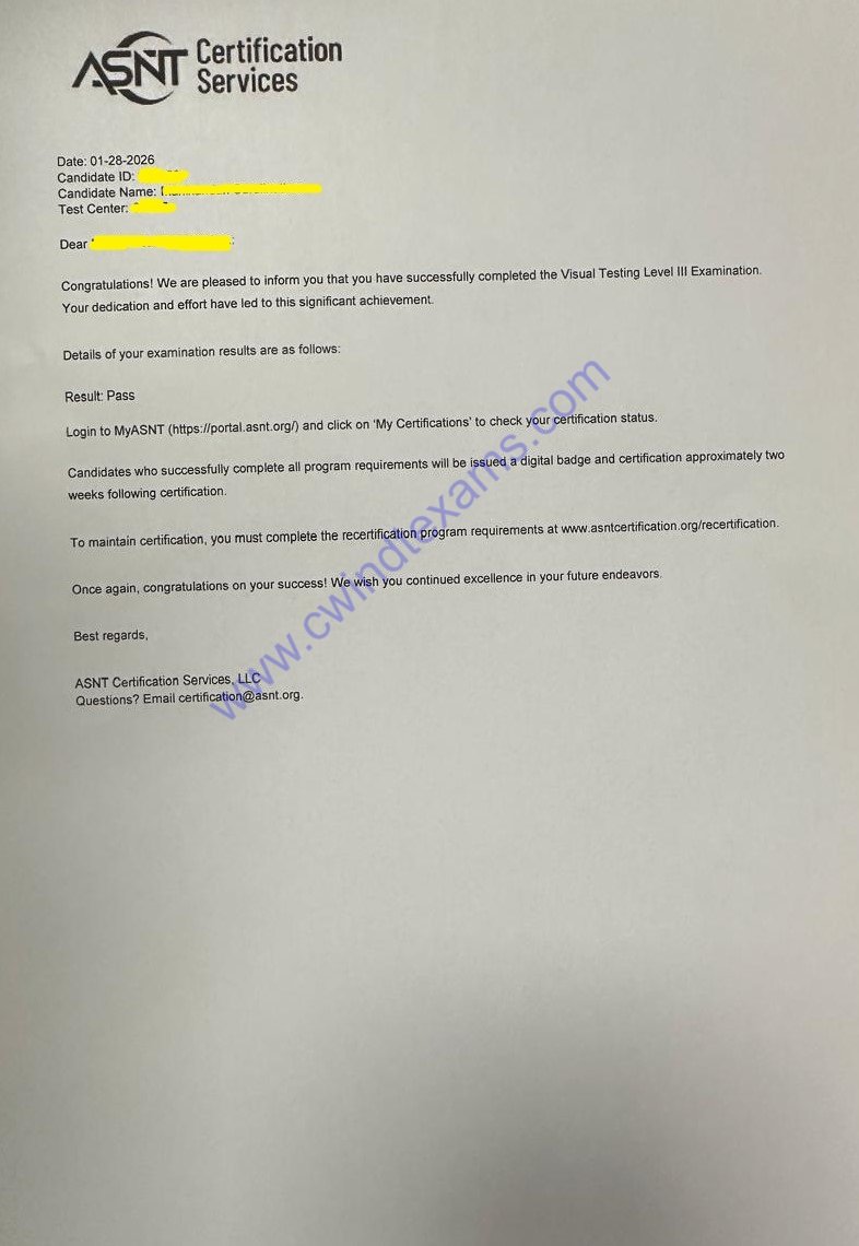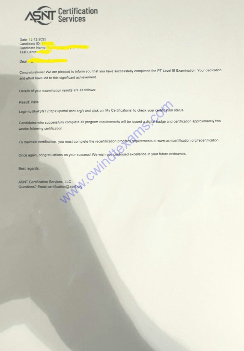 Our Recent ASNT NDT Level III Exam Success